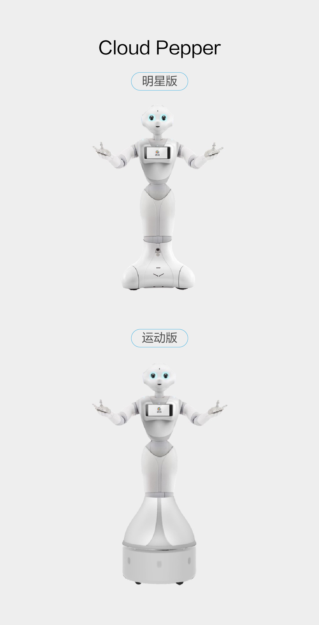 拥有人工增强型智能平台HARIX的Cloud Pepper可以进行更加自然的语音交互。千万级知识库与网络信息均可通过云端AI任其调用。